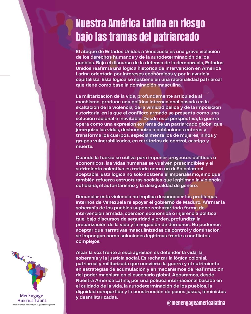 Nuestra América Latina en riesgo bajo las tramas del patriarcado El ataque de Estados Unidos a Venezuela es una grave violación de los derechos humanos y de la autodeterminación de…